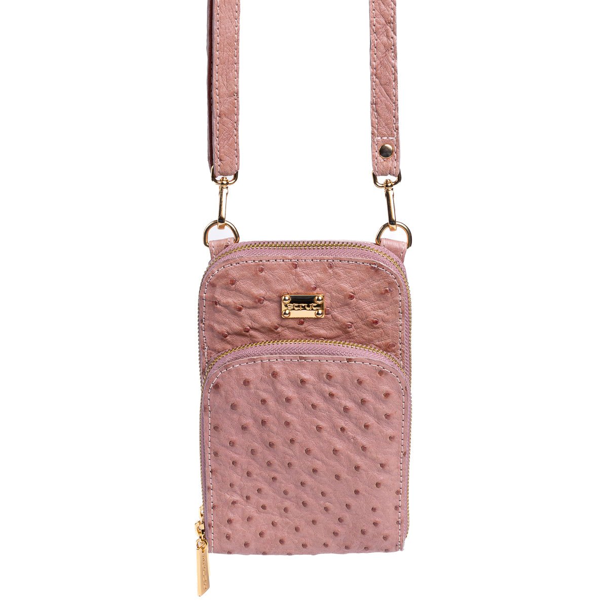 Encante-se com a delicadeza e sofisticação da nossa bolsa transversal em couro de avestruz rosa claro, uma peça exclusiva que combina feminilidade, elegância e a qualidade incomparável do couro legítimo.