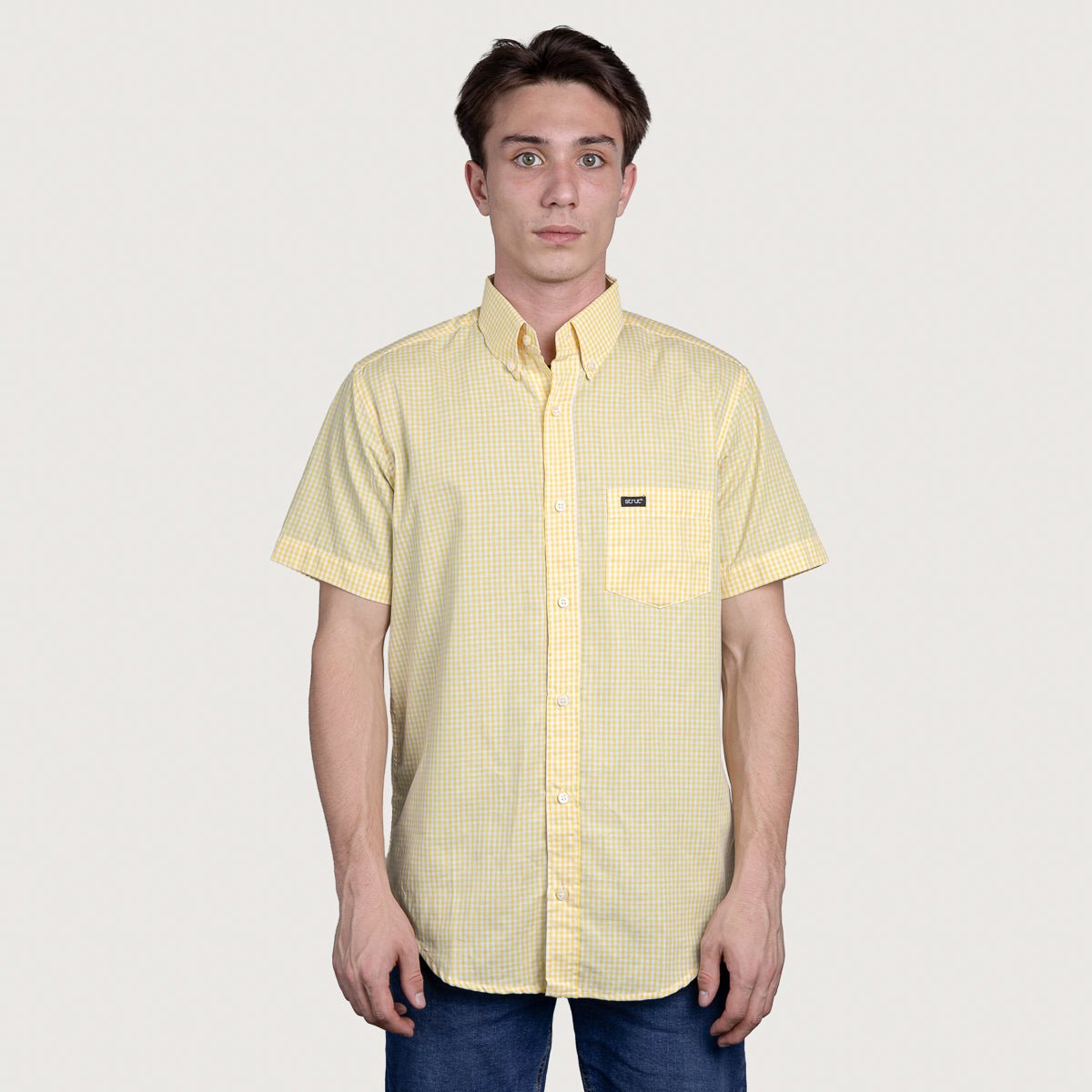 Camisa xadrez em algodão de alta qualidade, ideal para o guarda-roupa masculino versátil. O padrão xadrez amarelo oferece um visual clássico e sofisticado, perfeito para ocasiões casuais ou semi-formais. Manga curta proporciona conforto em climas quentes, enquanto o tecido respirável garante liberdade de movimento. Detalhes bem acabados e corte estruturado asseguram durabilidade e elegância. Uma peça essencial que combina com diversos estilos e complementos, elevando qualquer composição com autenticidade e refinamento.