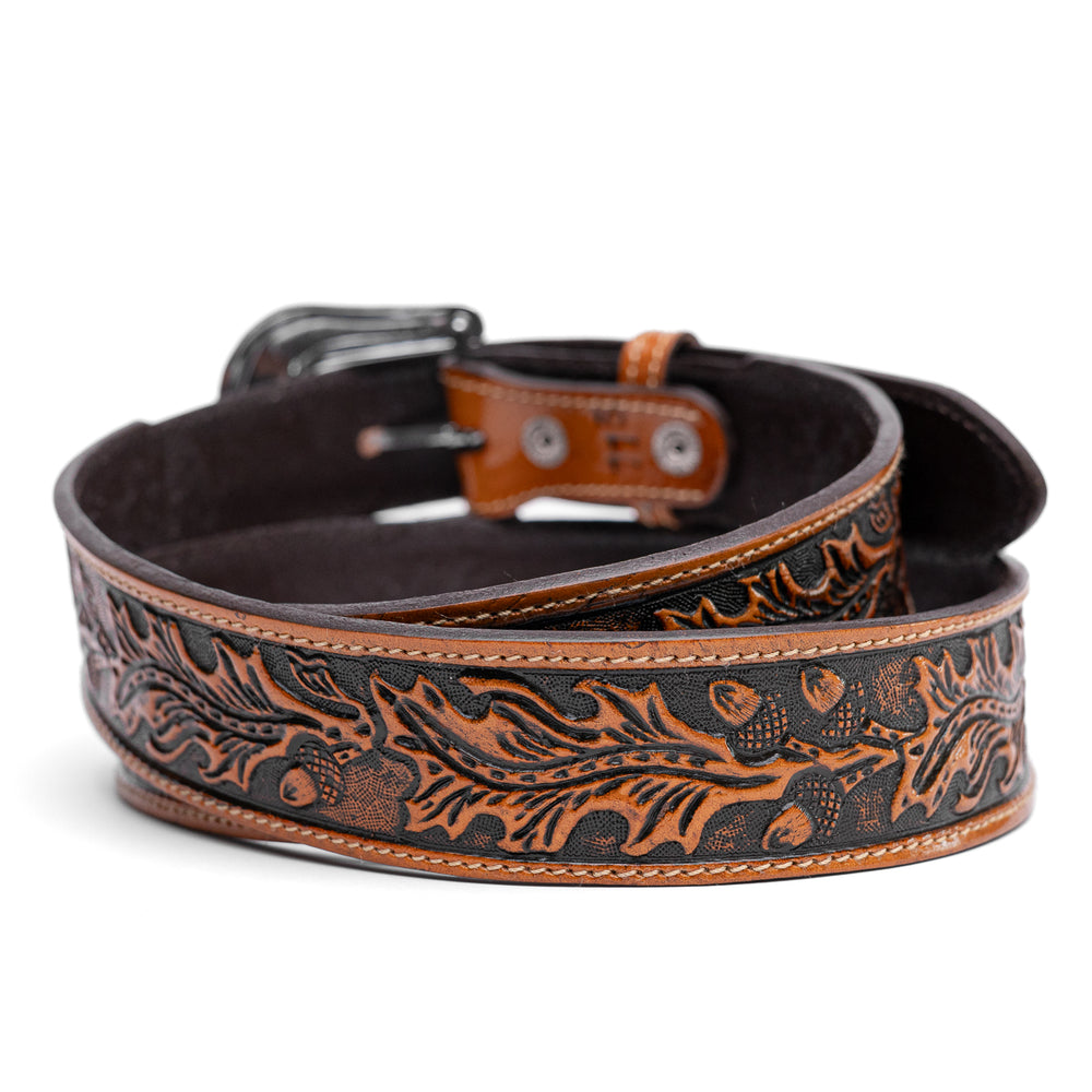 Cinto em Couro Bovino Entalhado Adoniro´s Tabaco