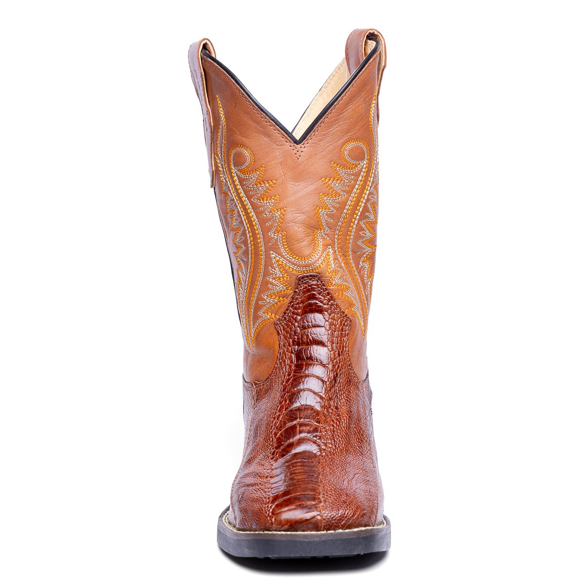 A Bota Masculina Strut em Couro de Canela de Avestruz com Cano Bordado combina autenticidade, elegância e qualidade premium em um único calçado. Produzida artesanalmente em 100% couro legítimo de canela de avestruz, apresenta uma textura exótica e durável, que se destaca pelo brilho natural e pela maciez incomparável.